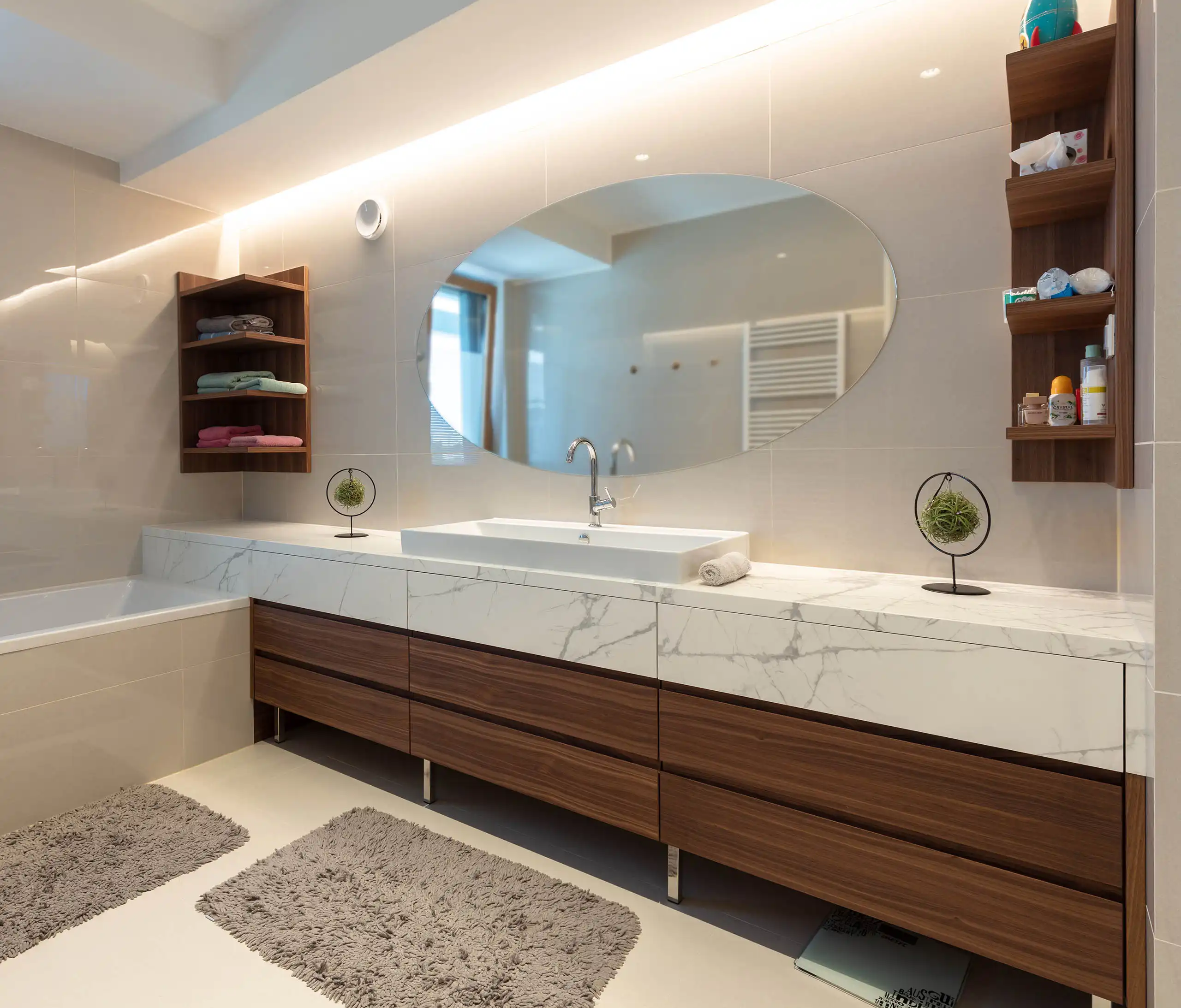 Bei der Herstellung von Badmöbeln legen wir besonderen Wert auf die Auswahl hochwertiger Materialien und deren fachgerechte Verarbeitung. Mit hochwertigen Materialien und technisch ausgefeilten Produkten verwandeln wir Ihr Badezimmer in Ihre persönliche Oase der Entspannung und des Wohlbefindens.