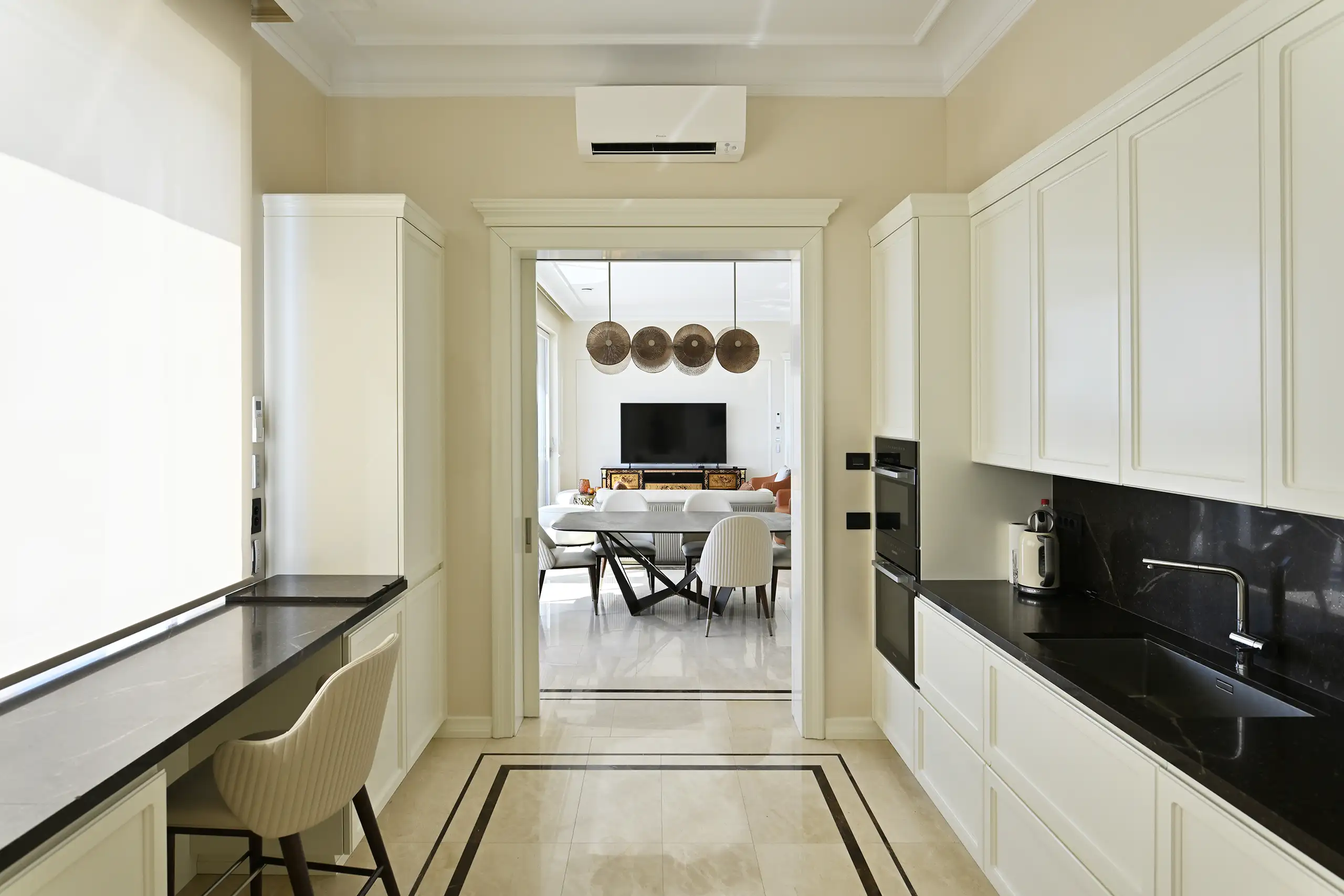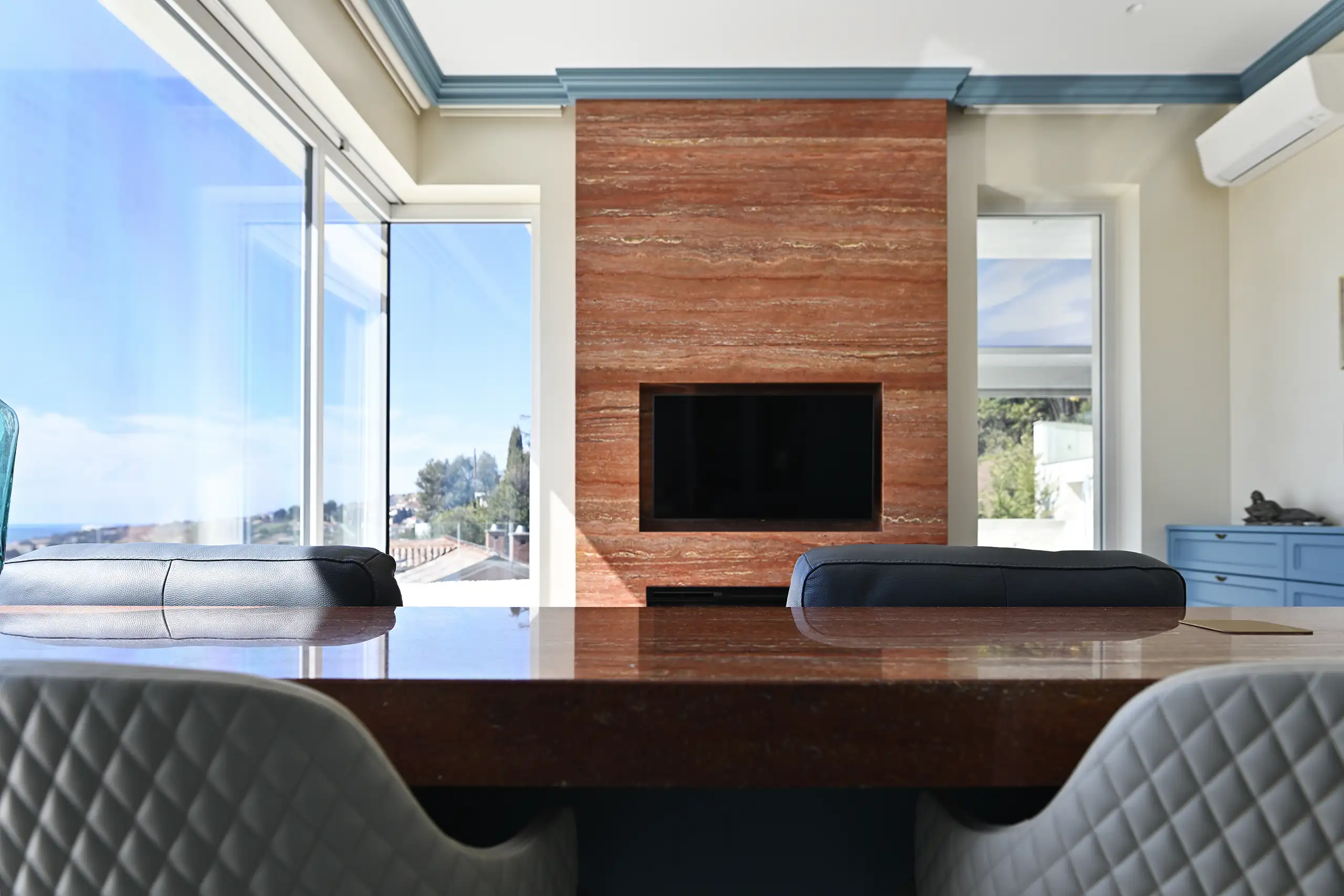 Die Villa ist ein perfektes Beispiel für zeitlose Eleganz, wo sich Komfort und Funktionalität ergänzen<. Diese luxuriöse Residenz am Meer bietet sorgfältig gestaltete Räume, die jeweils eine Geschichte von raffiniertem Geschmack und technischer Perfektion erzählen.