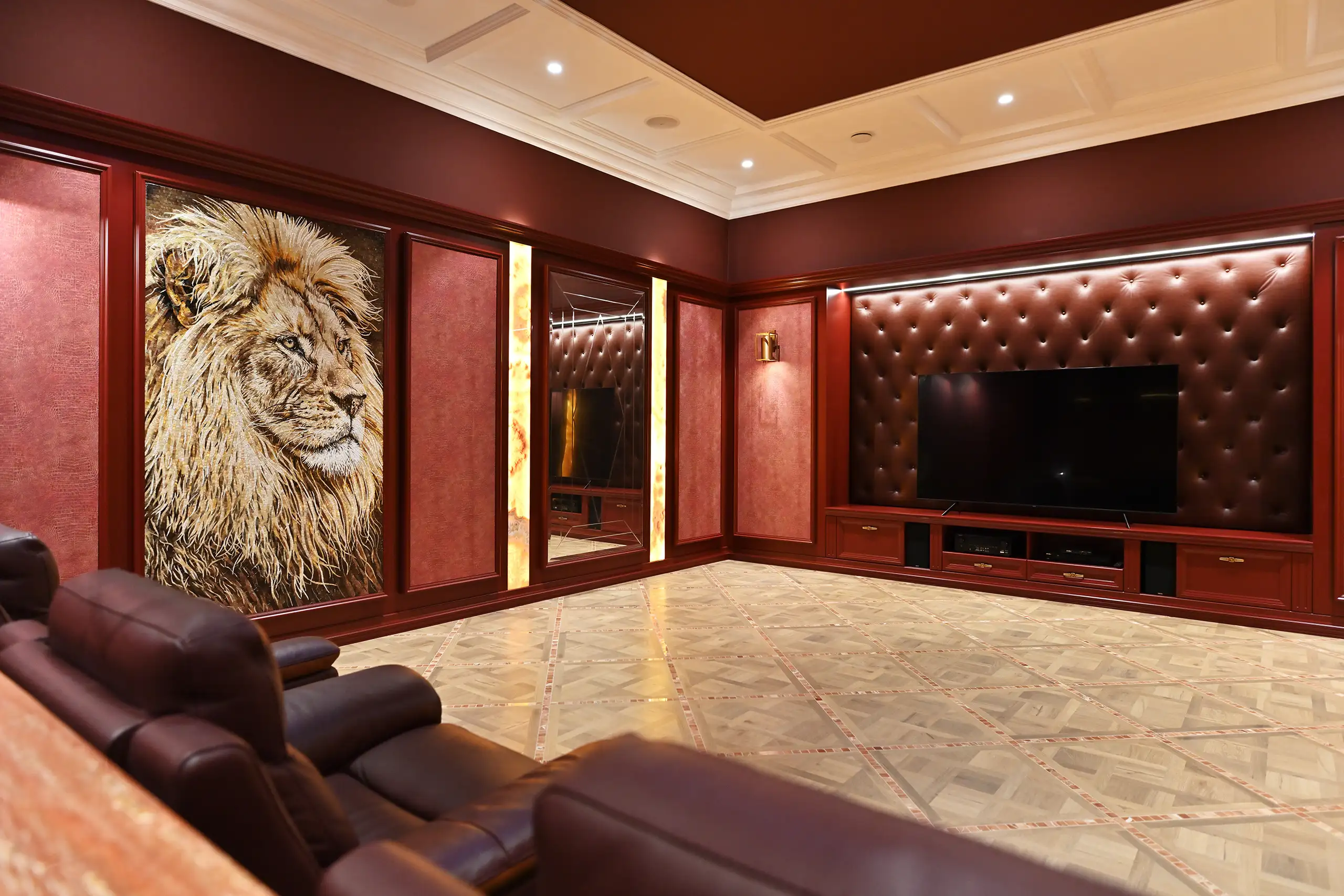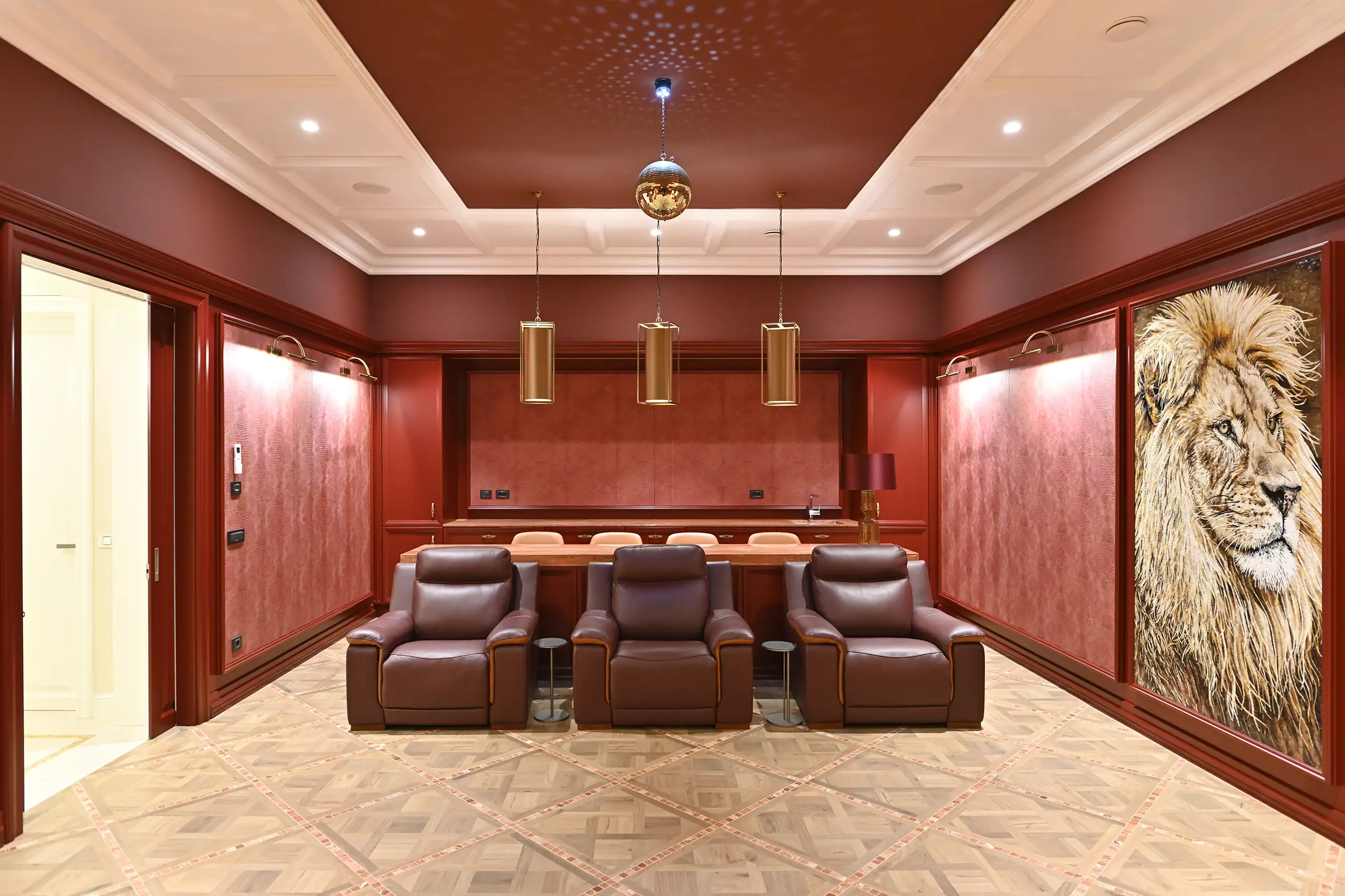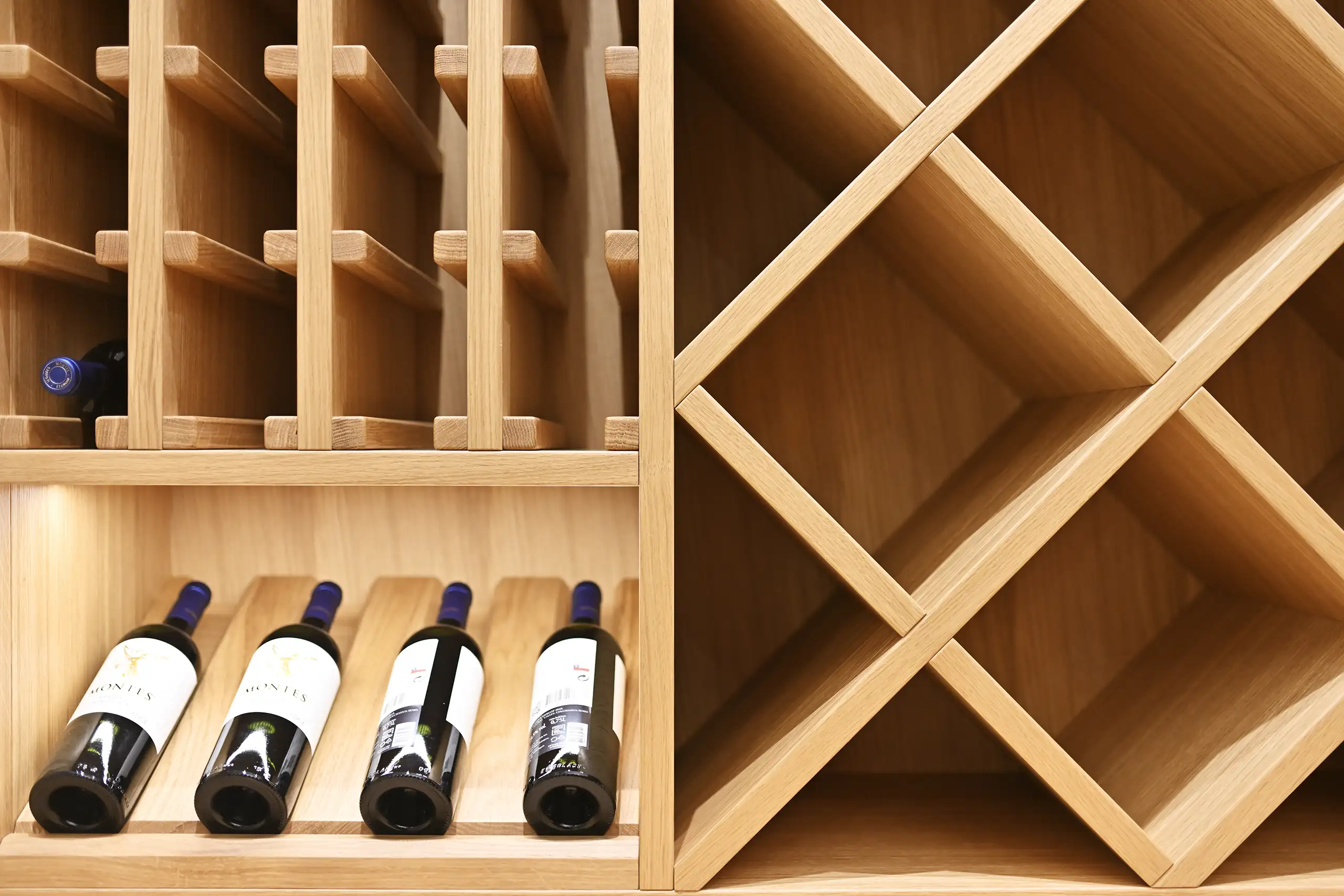 Eine Besonderheit der Villa ist der außergewöhnlich gestaltete Weinraum aus massiver Eiche. Jedes Regal ist das Ergebnis sorgfältiger Planung und Ausführung mit dem Ziel, Weinschätze optimal zu lagern und zu präsentieren.